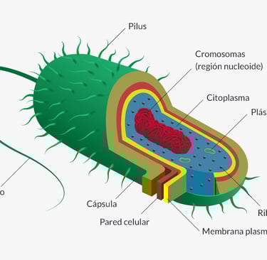 Nucleoide: A diferencia de las células eucariotas, las procariotas no tienen un núcleo definido. En su lugar, el material genético (ADN) se encuentra en una región irregular llamada nucleoide. Madigan et al. (2022) explica que este ADN es circular y contiene la información genética esencial para la célula.